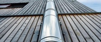 Надежность и герметичность кровельного пирога зависит от правильного выбора места вывода дымохода и вентиляционных каналов через крышу. От расположения прохода зависит отделка стыка. Если крыша изготавливается из профилированного листа, трубы выводят в следующих местах: