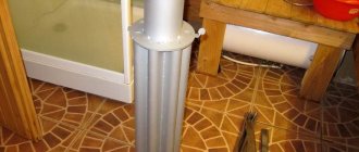 - Работы начинают с подготовки чертежа. Размеры бака, устанавливаемого на дымоход, зависят от диаметра трубы и типа печи. Печи простой конструкции с прямым дымоходом отличаются высокой температурой дымовых газов на выходе, поэтому размеры теплообменника могут быть достаточно большими: до 0,5 м высотой.
