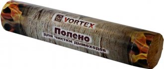 Chemical cleaning of chimneys is more of a preventative measure than a real cleaning. The bottom line is that after this the soot will fall off in places, but you will still have to use an additional brush. Plus, the smell in the bathhouse can last for several days. Therefore, if potato peelings are not available to you, you can buy some “Komichek” or “Log-chimney sweeper”.