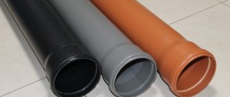 The choice of sewer pipe diameter should correspond to the average volume of water consumed. But taking this parameter into account is only necessary if the installation is planned in an apartment; for a private house, such a calculation is not needed. When choosing sewer pipes, it is worth considering the advantages and disadvantages of each material. It is worth remembering that steel structures can easily withstand high temperatures, but are highly susceptible to corrosion. But cast iron products are not afraid of corrosion, can withstand heavy loads, but have a lot of weight and price.