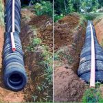 - If the distance is very large, the board is cut off. Prepare a second fragment of the appropriate length and cut out halves of the circle in the laminate. When laid, the fragments form a channel for the pipeline.