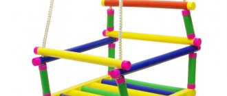 Plastic swings must be assembled from polypropylene pipes with a diameter of 32-55 mm, or from large-diameter metal-plastic pipes. To make the structure rigid, metal rods of suitable diameter are inserted into the supporting pipes - they will not make the portable structure too heavy, but will make it as safe as possible for children. For a chair of such a swing, you can cut out a sheet of OSB and bolt it to the frame. To make a stationary swing with your own hands, it is enough to drive iron rods into the ground, onto which the main skeleton of the structure will be mounted.