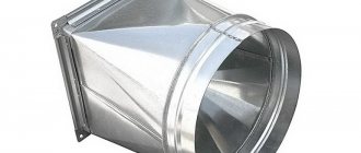 For example, if there is a need to lay ventilation ducts under a suspended ceiling, then you just need to change the dimensions of the rectangular section. That is, increase the width and decrease the height as required so that the cross-sectional area does not change. For example, we can give this ratio - 20x20 cm, and a modified one - 10x40 cm.