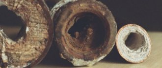 Также со временем трубы «зарастают» отложениями, особенно чугунные. Но происходит это довольно медленно. Наиболее вероятное место появления отложений — горизонтальные участки труб, там где вода течет с меньшей скоростью.