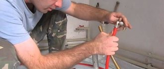 - Отмерить и отрезать два куска трубы, из которых будут изготовлены отводы. Сразу же устанавливается запорная арматура — обычно, это шаровые краны.